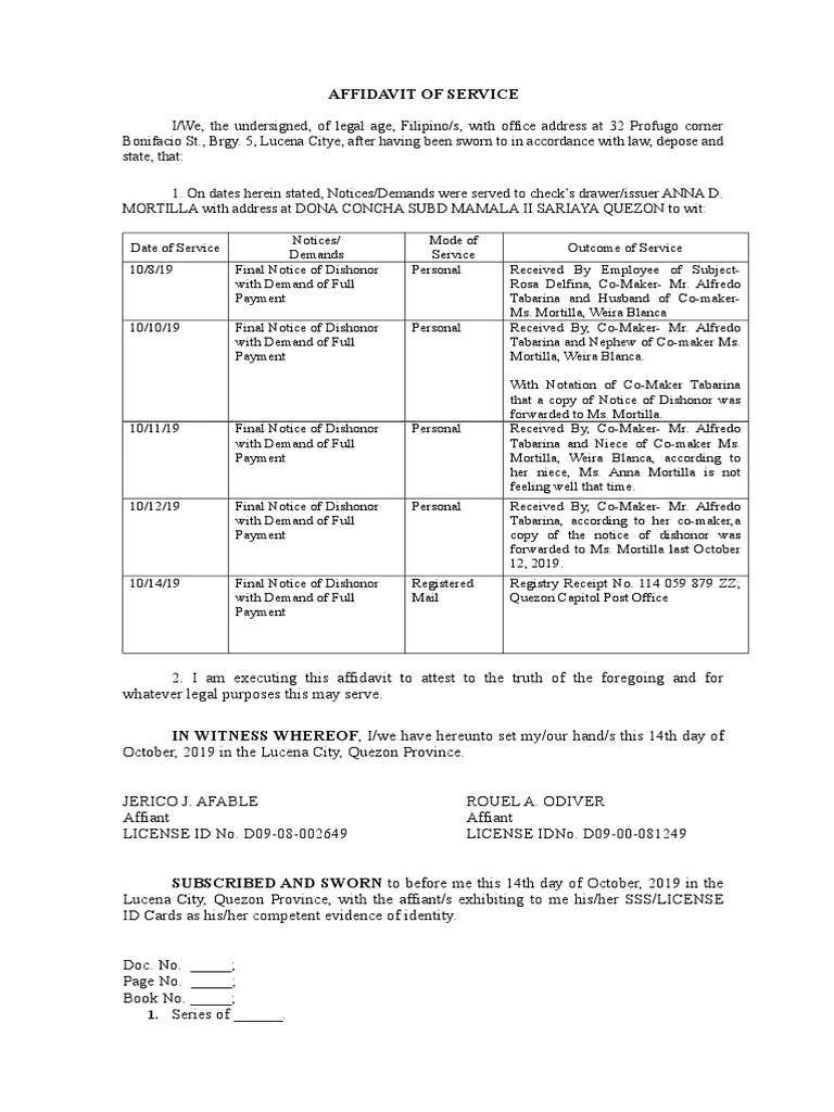 100k+ visitors in the past month Whether you work for a state. I, ___________________________________ being duly sworn says: Whenever any legal papers are served, the person serving the papers must fill out a written form that says how the papers were. Prove that documents were served on someone.