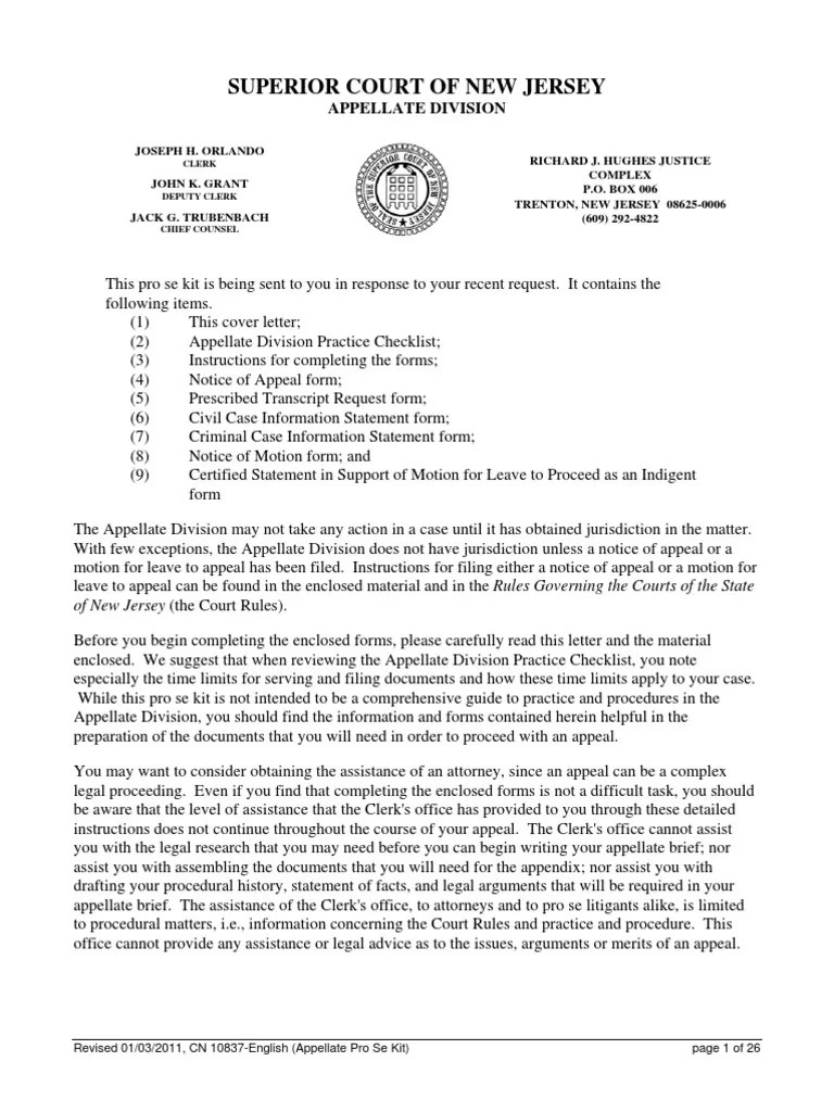 NJ+Appellate+Pro+Se+Kit Brief (Law) Pro Se Legal Representation In
