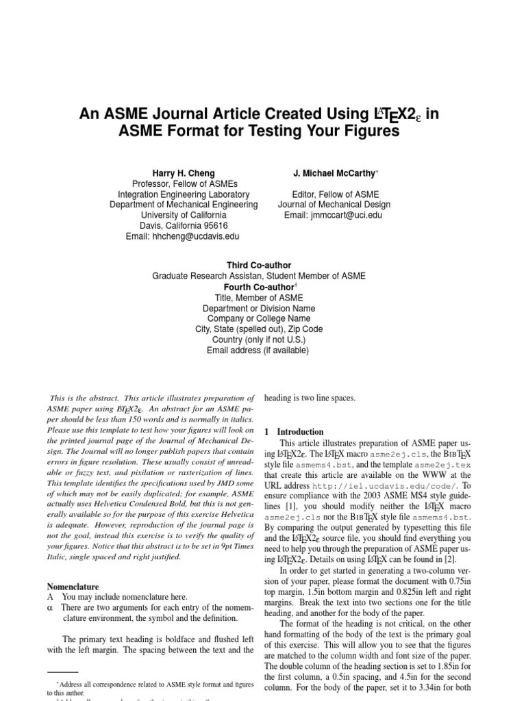 Please refer to the faqs provided with the release before. The easiest way to format the paper is to use the templates. The intended use of this package is to. Papers typeset in this class will follow asme journal style for margins, fonts, headings, captions, and reference formats. Asme accepts only original contributions to the engineering literature for publication. These are not maintained by the. Key elements to writing a good research paper are. Templates to assist in properly formatting manuscripts for review and publication are available. The latex2e templates for asme journal and conference papers provided below. This class is not a publication of asme, although the author has published in asme journals since 1984. All artwork, tables, and graphs must be correctly inserted into the final paper. Asme provides templates to assist authors in preparing their papers for publication. The following templates are offered: