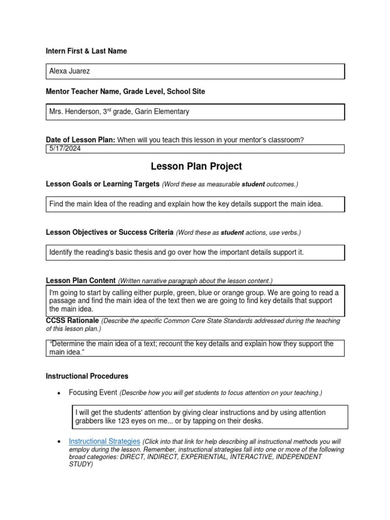 Internship Ccss Lesson Plan Template 4 Download Free PDF Lesson
