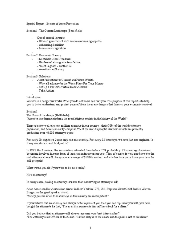 Special Report Secrets of Asset Protection CommonLaw Trust Common
