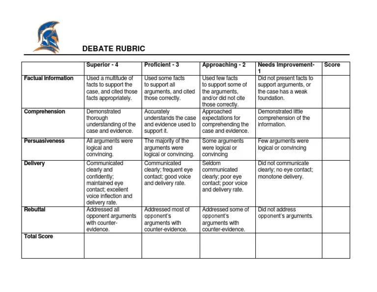 National speech and debate education day; Evidence for this score should be. Rubric for evaluating debate performancehandout 8directions: Use this rubric to rate.