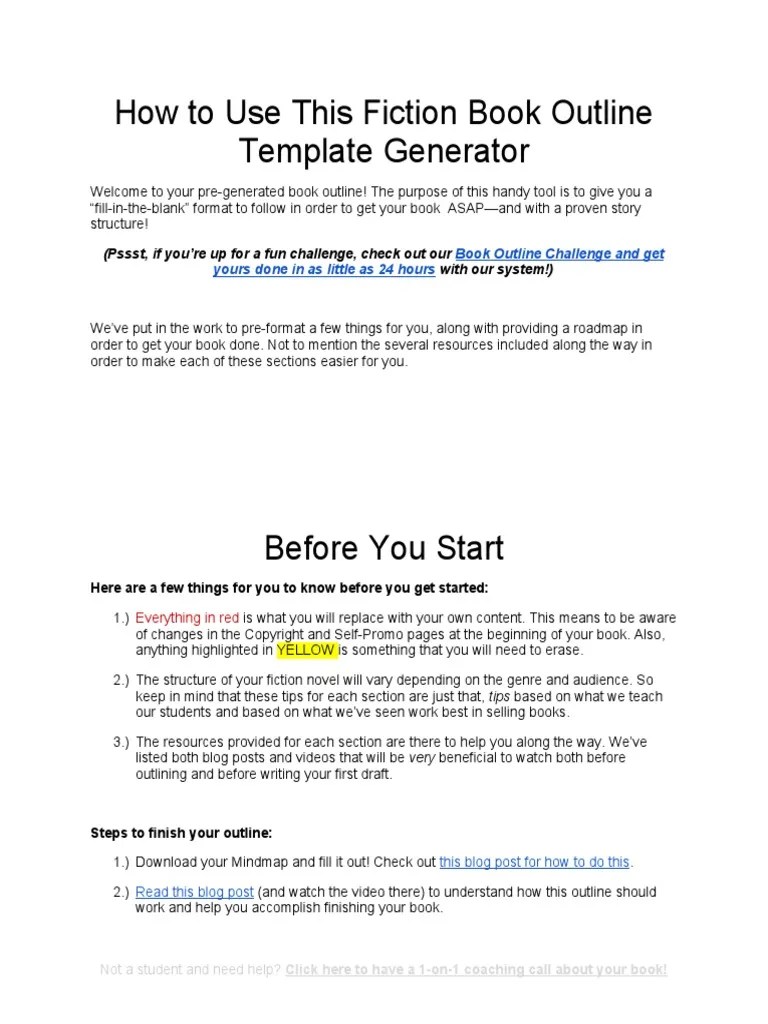 Fiction Book Outline Template Generator PDF Plot (Narrative) Books