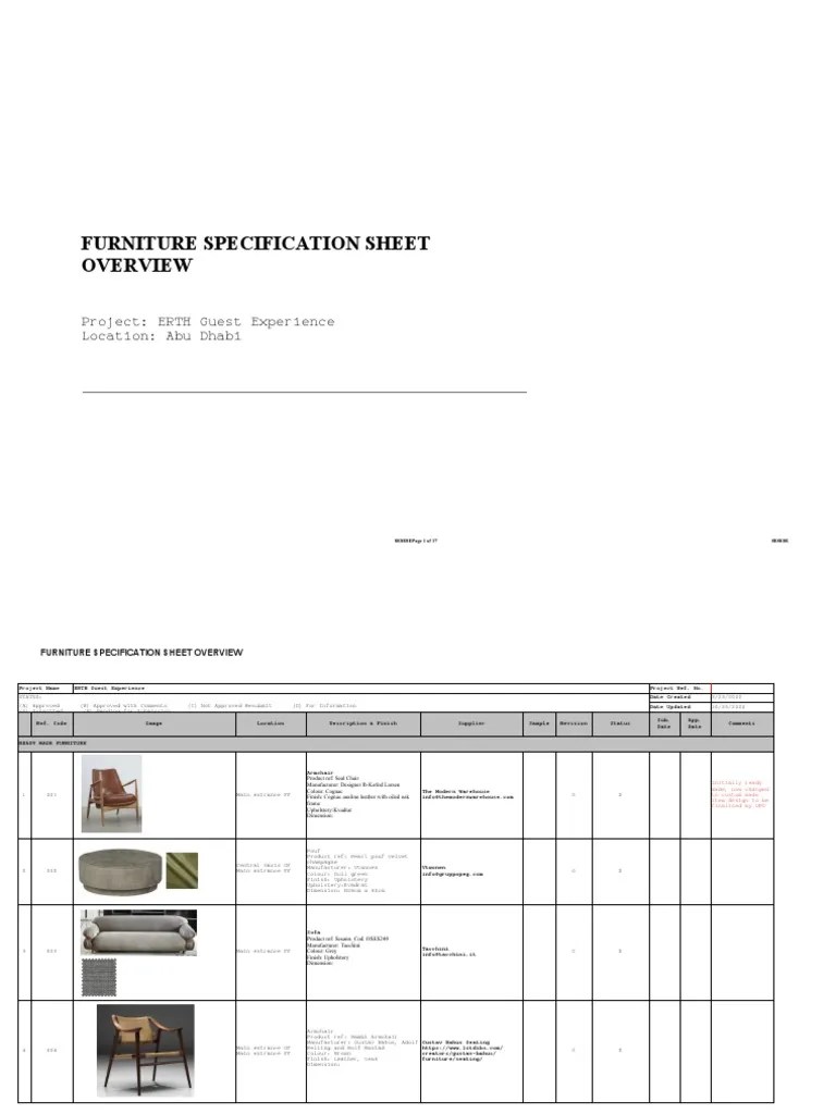 03 Furniture Specification Sheet Overview PDF Upholstery Design