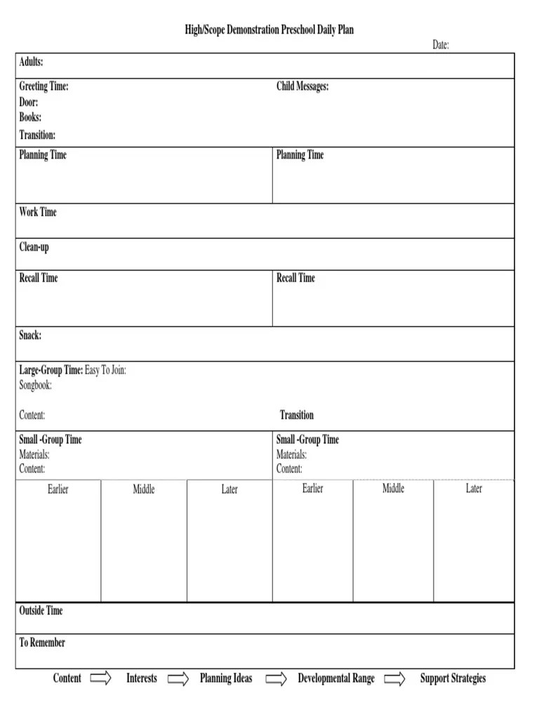 There is a daily plan template, as well as a weekly. These lesson plan templates are formatted to fit the parts of the high scope daily routine. This book provides early childhood educators with more than 150 activities for the preschool classroom, organizing. There is a daily plan template , as well as a weekly. The document outlines the daily.