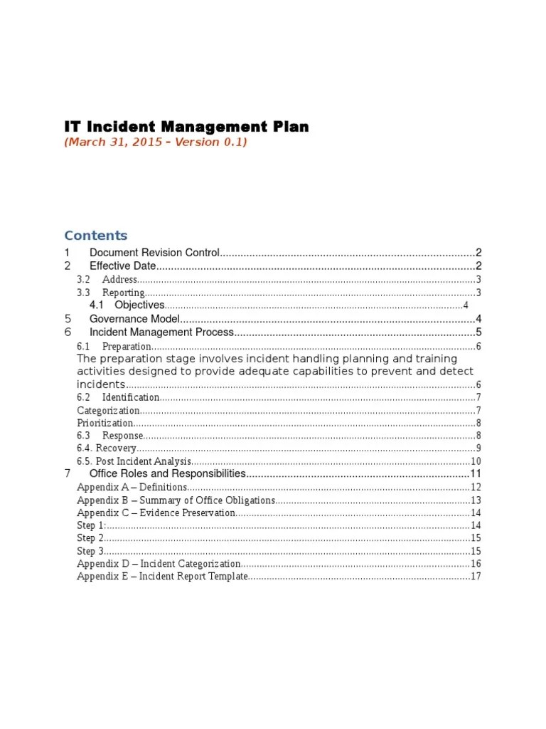 Download our free incident response plan template to get started on yours. Discover the key to operational efficiency and security with our comprehensive incident management policy template. First, state the purpose and/or objectives of your incident management policy. Helps layout expectations and guidance around the incident management process for staff. This policy defines the requirement for reporting and responding to.