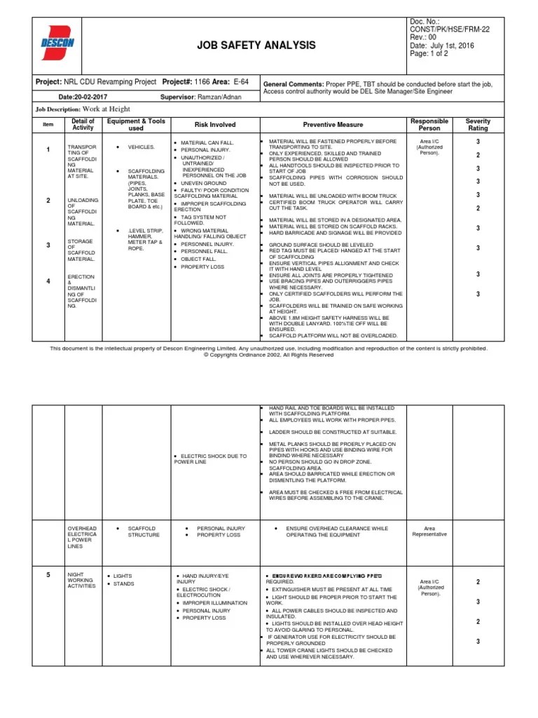 Creating a job safety analysis for work at height activities is a fundamental step in ensuring workplace safety. Ensure all tools are appropriately guarded and electrical appliances. A collection of 7 best job safety analysis (jsa) templates. Use cherry picker or scaffold. This document provides a job safety analysis for work at heights conducted by megha engineering & infrastructures ltd.