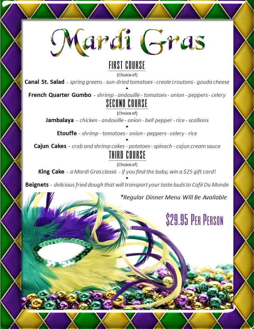 Start the party off right with the mardi gras template. Customize your own mardi gras menu with this free printable and editable template from canva. Create free menu mardi gras flyers, posters, social media graphics and videos in minutes. Here are some simple ideas for a mardi gras party at home. Use vibrant colors like purple, green, and gold, which.