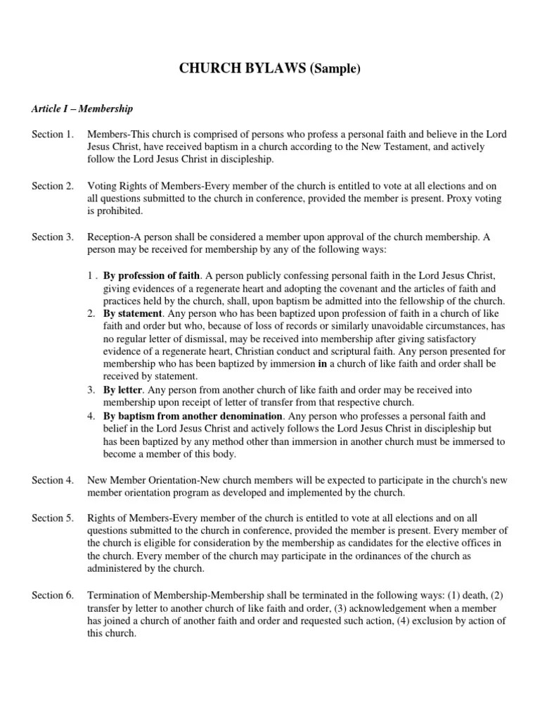 Constitution bylaws of sample baptist church in Word and Pdf formats