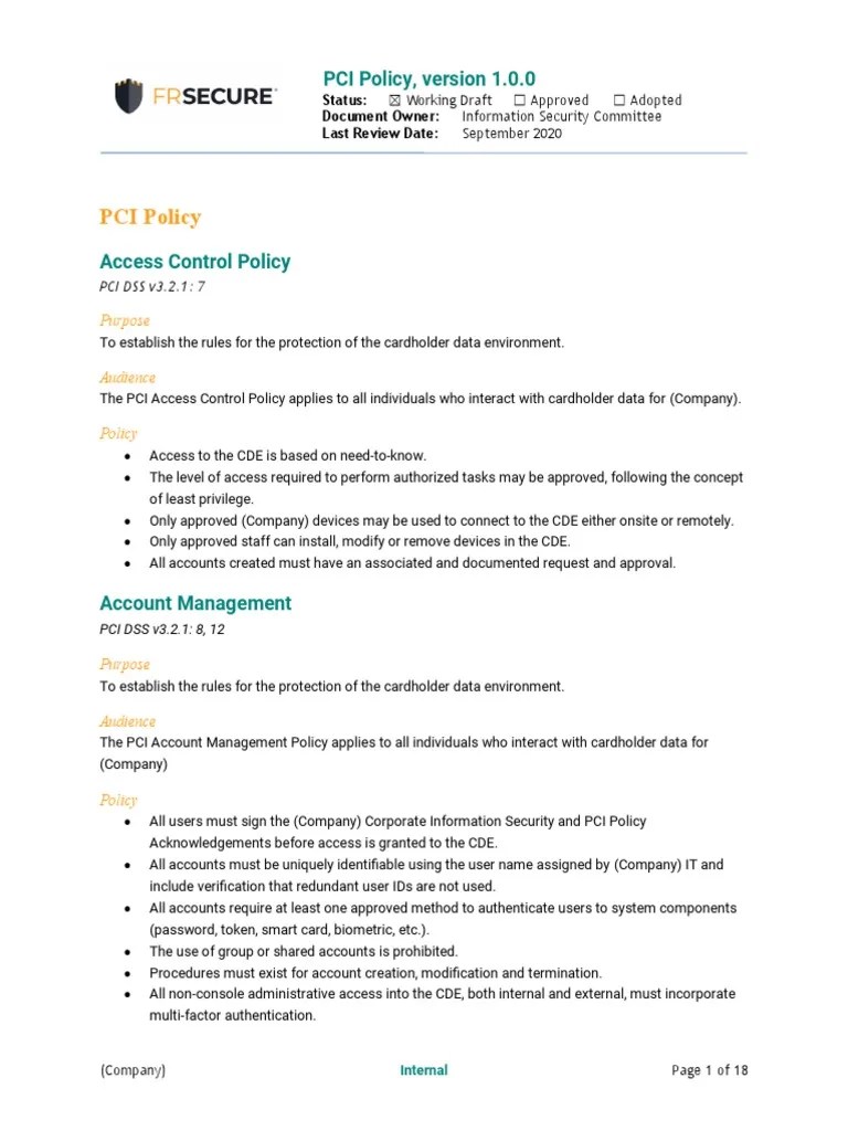 Pci Compliance Policy Template Free
