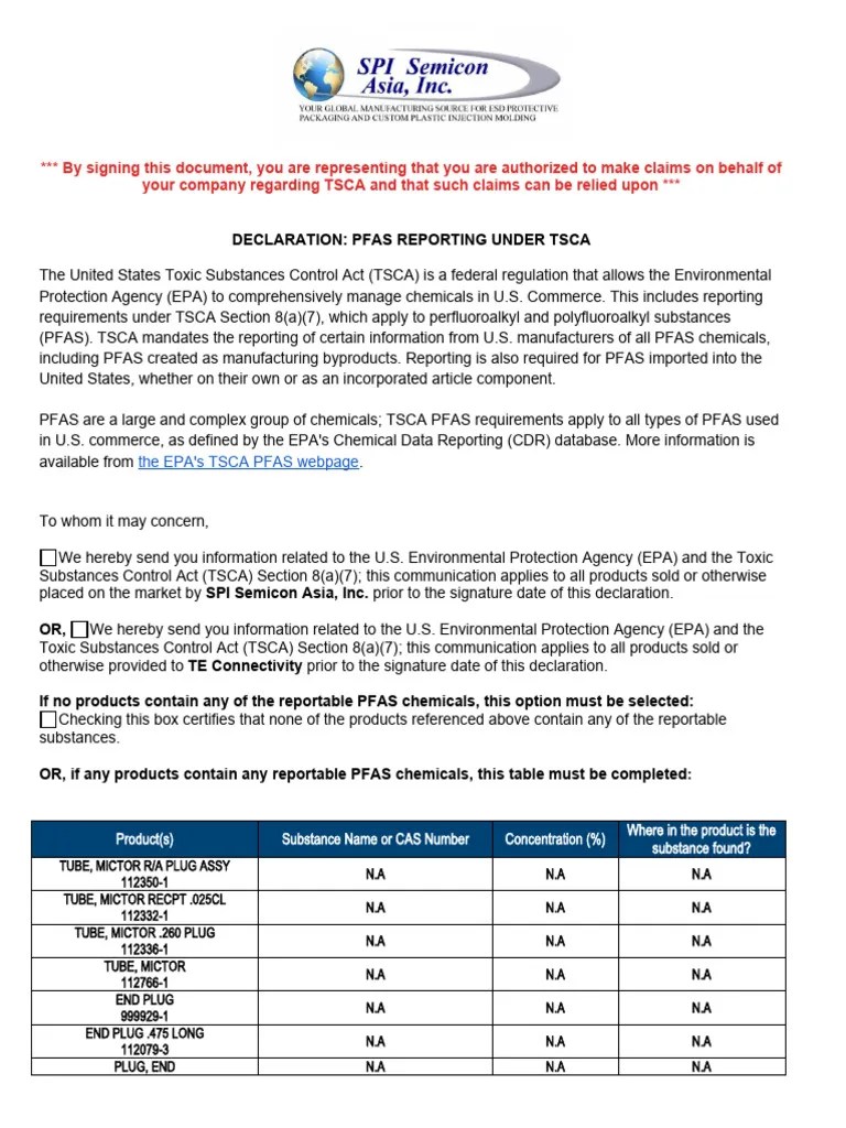 TSCA PFAS Declaration Template PDF Occupational Safety And Health