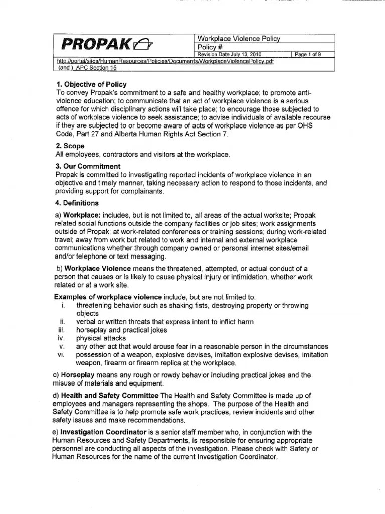 This Sample Policy Provides Guidelines To Deal With Intimidation, Harassment Or Other Threats Of Or Actual Violence That May Occur Onsite Or.
